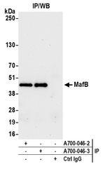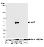 蛋白别名: Kreisler; Kreisler (maf-related) leucine zipper protein; Kreisler maf-related leucine zipper homolog; Maf-B; MAFB/Kreisler basic region/leucine zipper transcription factor; MGC43127; Segmentation protein Kr; Transcription factor Maf-1; Transcription factor MafB; v-maf avian musculoaponeurotic fibrosarcoma oncogene homolog B; V-maf musculoaponeurotic fibrosarcoma oncogene homolog B