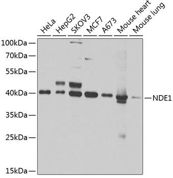 NDE1 is s a member of the nuclear distribution E (NudE) family of proteins. It is localized at the centrosome and interacts with other centrosome components as part of a multiprotein complex that regulates dynein function. NDE1 protein plays an essential role in microtubule organization, mitosis and neuronal migration. Mutations to the gene lead to Lissencephaly 4 (LIS4) and Microhydranencephaly (MHAC).