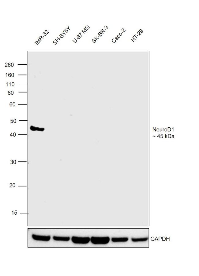 NeuroD1 is a transcriptional activator that acts as a differentiation factor during neurogenesis. It has been demonstrated to bind to the insulin gene E-box. Efficient DNA binding requires dimerization with another basic helix-loop-helix (bHLH) protein. Defects in NEUROD1 are a cause of maturity onset diabetes of the young type VI (MODY6). MODY6 is a form of non-insulin-dependent diabetes mellitus characterized by an autosomal dominant mode of inheritance, onset during young adulthood and a primary defect in insulin secretion.