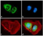 Immunofluorescence analysis of Piwi-like protein 1 was performed using 70% confluent log phase HeLa cells. The cells were fixed with 4% paraformaldehyde for 15 minutes, permeabilized with 0.1% Triton™ X-100 for 15 minutes, and blocked with 2% BSA for 1 hour at room temperature. The cells were labeled with PIWIL1 Recombinant Rabbit Superclonal™ Antibody (10HCLC) (Product # 710208) at a concentration of 1 µg/mL in 0.1% BSA, incubated at 4 degree celsius overnight and then labeled with Donkey anti-Rabbit IgG (H+L) Highly Cross-Adsorbed Second... View More {{ $ctrl.currentElement.advancedVerification.fullName }} 验证信息 View more