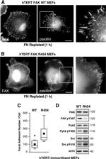 PTK2B (FAK2) is a cytoplasmic tyrosine kinase involved in calcium-induced regulation of ion channels and activation of the map kinase signaling pathway. PTK2B regulates reorganization of the actin cytoskeleton, cell polarization, cell migration, adhesion, spreading, and bone remodeling. FAK2 plays a role in the regulation of the humoral immune response and is required for normal levels of marginal B-cells in the spleen and normal migration of splenic B-cells. It functions in signaling downstream of integrin and collagen receptors, immune receptors, G-protein coupled receptors, cytokine, chemokine, and growth factor receptors, and mediates responses to cellular stress. Aberrant FAK2 expression may play a role in cancer cell proliferation, migration, and invasion in tumor formation and metastasis. Elevated expression has been seen in gliomas, hepatocellular carcinoma, lung cancer, and breast cancer.
