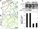 STAT5 alpha is a member of the STAT family of transcription factors. In response to cytokines and growth factors, STAT family members are phosphorylated by the receptor associated kinases, and then form homo- or heterodimers that translocate to the cell nucleus where they act as transcription activators. STAT5 alpha is activated by, and mediates the responses of many cell ligands, such as IL2, IL3, IL7 GM-CSF, erythropoietin, thrombopoietin, and different growth hormones. Activation of STAT5 alpha in myeloma and lymphoma associated with a TEL/JAK2 gene fusion is independent of cell stimulus and has been shown to be essential for the tumorigenesis. The mouse counterpart of STAT5 alpha is found to induce the expression of BCL2L1/BCL-X(L), which suggests the antiapoptotic function of this protein in cells. STAT5 alpha, along with STAT5 beta, were identified in mouse. The amino acid sequences of STAT5 alpha and STAT5 beta show 96% sequence similarity, and both proteins are co expressed in most tissues in virgin and lactating mice. However, differential accumulation of STAT5 alpha and STAT5 beta mRNA has been reported for both muscle and mammary tissue. STAT5 alpha is critically involved in a variety of physiological functions, including reproduction, lactation, immune function and somatic growth.