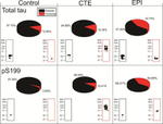 Tau is a neuronal microtubule-associated protein found predominantly on axons. The function of Tau is to promote tubulin polymerization and stabilize microtubules. The C-terminus binds axonal microtubules while the N- terminus binds neural plasma membrane components, suggesting that tau functions as a linker protein between both. Axonal polarity is predetermined by TAU/MAPT localization (in the neuronal cell) in the domain of the cell body defined by the centrosome. The short isoforms allow plasticity of the cytoskeleton while the longer isoforms may preferentially play a role in its stabilization. In its hyper-phosphorylated form, Tau is the major component of paired helical filaments (PHF), the building block of neurofibrillary lesions in Alzheimer's diseases (AD) brain. Hyper-phosphorylation impairs the microtubule binding function of Tau, resulting in the destabilization of microtubules in AD brains, ultimately leading to the degeneration of the affected neurons. Numerous serine/threonine kinases phosphorylate Tau, including GSK-3beta, protein kinase A (PKA), cyclin-dependent kinase 5 (cdk5) and casein kinase II. Hyper-phosphorylated Tau is found in neurofibrillary lesions in a range and other central nervous system disorders such as Pick's disease, frontotemporal dementia, cortico-basal degeneration and progressive supranuclear palsy.
