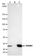 蛋白别名: BRCA1/BRCA2-containing complex, subunit 5; DNA repair protein RAD51 homolog 1; HsRAD51; RAD51 homolog; RAD51 homolog (RecA homolog, E. coli); RAD51 homolog A; RecA, E. coli, homolog of; RecA-like protein; recombination protein A