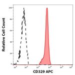 Flow cytometry (surface staining) of SIGLEC9 in human peripheral whole blood. Samples were stained with SIGLEC9 monoclonal antibody (Product # MA562296) using a dilution of 10 µL reagent/100 µL of peripheral whole blood. Separation of human monocytes (red-filled) from CD329 negative lymphocytes (black-dashed). {{ $ctrl.currentElement.advancedVerification.fullName }} 验证信息 View more