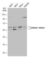 Recommended positive controls: 293T, A431, HeLa, HepG2, mouse brain, rat brain, SMAD2 and SMAD3-transfected 293T.