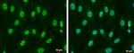 Immunofluorescence analysis of SMAD4 was performed using 70 % confluent log phase HeLa cells. The cells were fixed with 4% paraformaldehyde for 10 minutes, permeabilized with 0.1% Triton™ X-100 for 10 minutes, and blocked with 1% BSA for 1 hour at room temperature. The cells were labeled with SMAD4 Polyclonal Antibody (PA5-34806) at 5 µg/mL in 0.1% BSA and incubated overnight at room temperature and then labeled with Goat anti-Rabbit IgG (Heavy Chain) Superclonal™ Secondary Antibody, Alexa Fluor® 488 conjugate (A27034) at a dilution of 1:2... View More {{ $ctrl.currentElement.advancedVerification.fullName }} 验证信息 View more