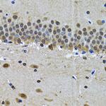 Immunohistochemistry analysis of SPIN1 in paraffin-embedded mouse brain. Samples were incubated with SPIN1 Polyclonal antibody (Product # PA5-96448) using a dilution of 1:100 (40x lens). Perform microwave antigen retrieval with 10 mM PBS buffer pH 7.2 before commencing with IHC staining protocol. {{ $ctrl.currentElement.advancedVerification.fullName }} 验证信息 View more