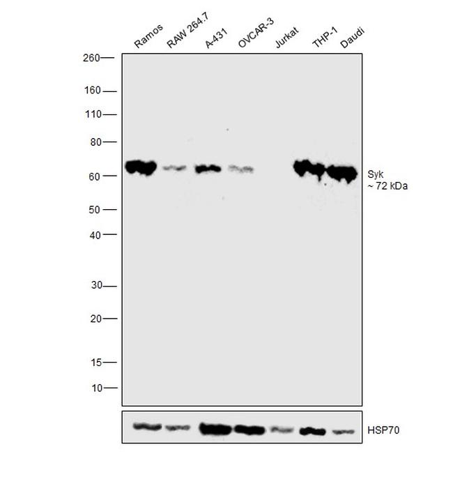 This antibody is not cross-reactive with other members of the Syk/Zap-70 tyrosine kinase family.