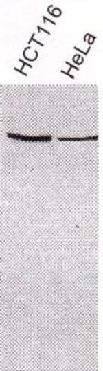 Western blot analysis of XRCC3 in HeLa cell extract. Samples were incubated with XRCC3 polyclonal antibody (Product # PA1-16535) using a dilution of 1:2,500. Lanes 1 and 2 contain HTC116 and Hela whole cell extracts, respectively. {{ $ctrl.currentElement.advancedVerification.fullName }} 验证信息 View more