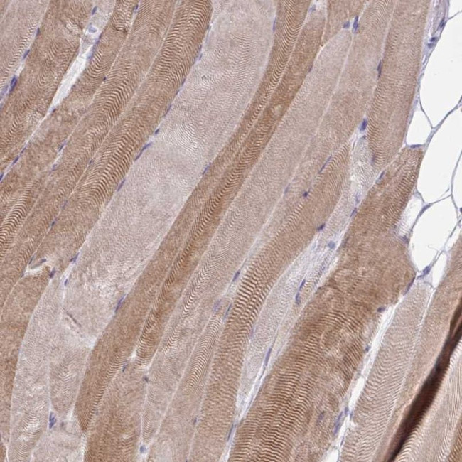 Immunohistochemical analysis of ZNF498 in human skeletal muscle using ZNF498 Polyclonal Antibody (Product # PA5-63411) shows moderate cytoplasmic positivity in myocytes. {{ $ctrl.currentElement.advancedVerification.fullName }} 验证信息 View more