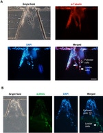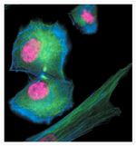 The anti-bovine alpha-tubulin antibody can be used with secondary detection techniques to visualize microtubules in fixed cells and in fixed or frozen tissue sections of various species. In addition, this antibody can be used to detect tubulin by ELISA and immunoblot, for the screening of expression libraries and, since it recognizes amino acids 65-97 of the N-terminal structural domain, as a probe for the N-terminal domain of alpha-tubulin.