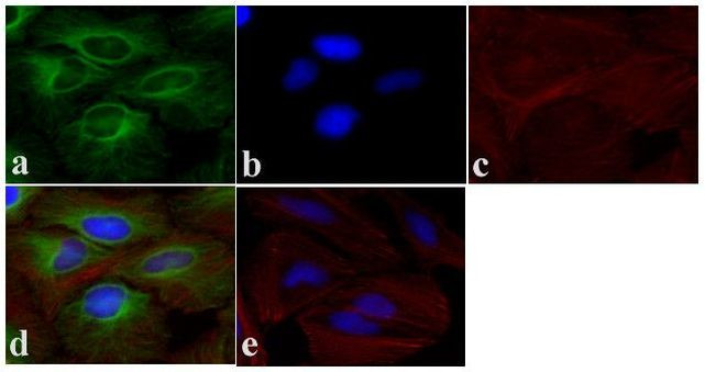 Alpha Tubulin is a part of a heterodimer consisting of alpha and beta tubulin subunits. The alpha and beta tubulins, which are each about 55 kDa MW, are homologous but not identical. Alpha-beta tubulin heterodimer is the basic building block of microtubules, and this intracellular cylindrical filamentous structure is present in almost eukaryotic cells. Microtubules serve as structural supports and lines of transport within the cell, as well as serving a key role in mitosis. Microtubules of the eukaryotic cytoskeleton perform essential and diverse functions and are composed of a heterodimer of alpha and beta tubulins. The alpha and beta tubulins represent the major components of microtubules, while gamma tubulin plays a critical role in the nucleation of microtubule assembly. There are multiple alpha and beta tubulin genes, which are highly conserved among species. The gene that encodes alpha tubulin is highly similar to the mouse and rat Tuba1 gene. Northern blotting studies have shown that the gene expression is predominantly found in morphologically differentiated neurologic cells.