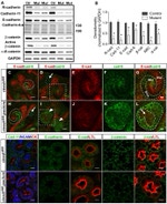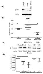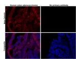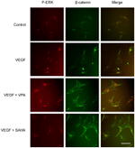 Beta-catenin, an adherens junction (AJ) protein, was originally identified as a component of cell-cell adhesion structures. AJs are necessary for the creation and maintenance of epithelial cell layers by regulating cell growth and adhesion between cells. Beta-catenin interacts with the cytoplasmic domain of E-cadherin and links E-cadherin to alpha-catenin, which in turn mediates anchorage of the E-cadherin complex to the cortical actin cytoskeleton. Studies show that Beta-catenin also binds to another cytoskeletal complex containing the adenomatous polyposis coli protein and microtubules, and interacts with several signaling pathways that include tyrosine kinases, phosphatases and Wnt/Wingless. The interplay between beta-catenin, cytoskeletal complexes and signaling pathways may regulate morphogenesis. Beta-catenin is expressed in several hair follicle cell types, basal and peripheral matrix cells, and cells of the outer and inner root sheats. A pathological role of beta-catenin has been identified in pilomatrixoma (PTR), medulloblastoma (MDB), colorectal cancer (CRC), ovarian cancer, and tumor development. In the nucleus, beta-catenin serves to co activate a family of Lef/Tcf transcription factors that stimulate transcription of target genes including those encoding cyclin D and c-myc that promote cell proliferation. The influence on cell proliferation is the molecular basis for the role of beta-catenin in tumorgenesis, specifically, solid tumors of the breast, colon, liver, lung, gastric, prostate, and skin.