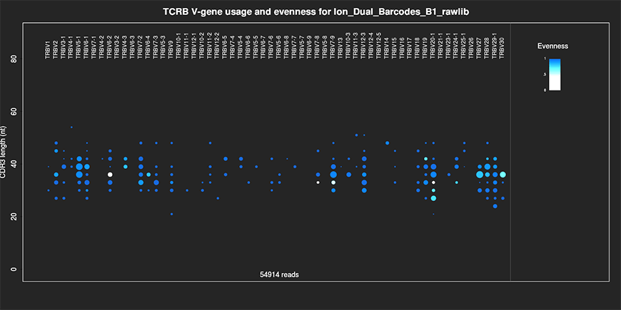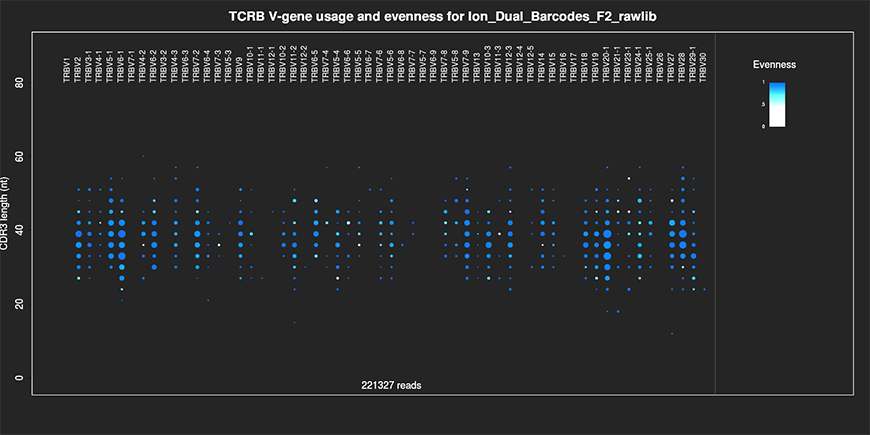 准确度—在 Ion GeneStudio S5 系统上,您可以以 DNA 或 RNA 为起点,只考察克隆数据中 TCR beta 链的有效重排