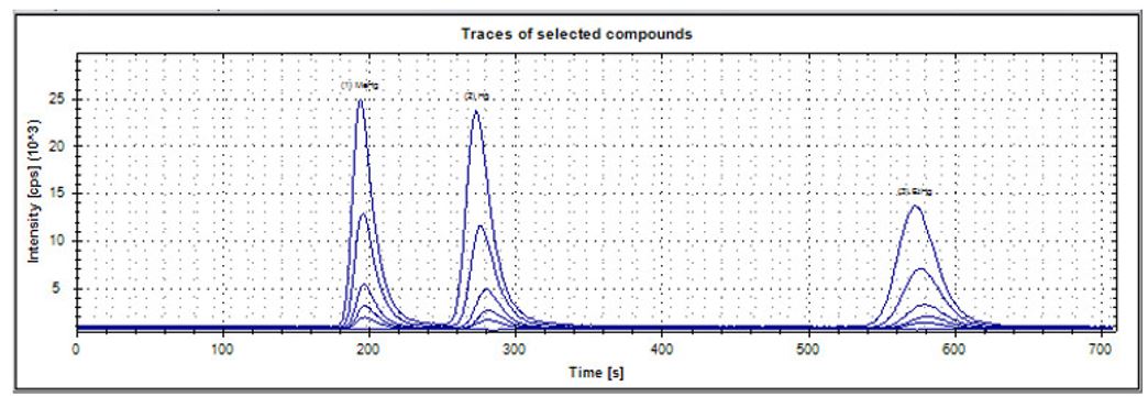 样品为鱼肉,采用赛默飞优势产品Ultimate 3000 UHPLC 与iCAP RQ ICP-MS联用,同时通过Qtegra(ICP-MS软件)中内嵌色谱软件变色龙(Chromeleon),无需触发线即可实现同一样品序列内色谱数据采集和处理的功能。