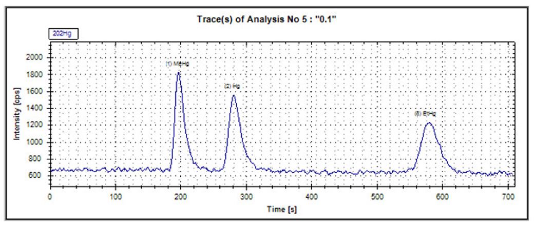 图2 0.1 μg/L 汞形态混合标液分离图谱