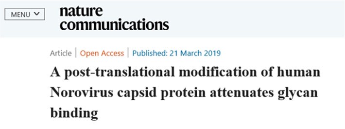 诺如病毒在组织血型抗原(HBGA)上的附着对于感染至关重要,但两者如何结合促进宿主细胞的感染尚不清楚,本文利用NMR和HDX-MS(Orbitrap Fusion系列质谱仪)技术研究HBGA与流行病毒株Gll.4的P结构域的结合。结果显示两者的结合具有高度的选择性,取决于位于与HBGA结合位点相邻的抗原环中373位的天冬酰胺转化为异天冬氨酸,在生理条件下此抗原自发性翻译后修饰的半衰期持续多天,且与HBGA的存在无关,但严重影响HBGA的识别。该翻译后修饰序列的保守性和位于病毒的表面位置,表明在许多诺如病毒株的感染和免疫识别中起着重要作用。