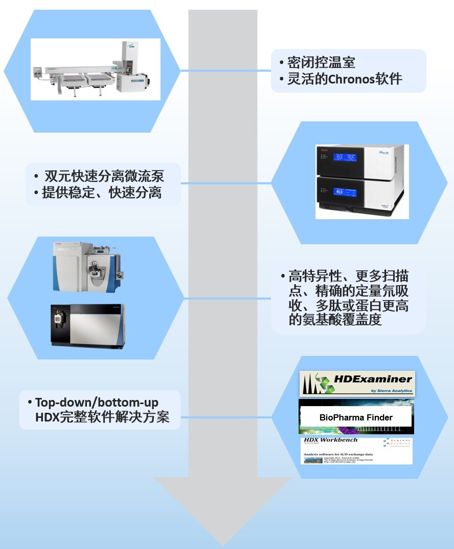 氢氘交换质谱(HDX-MS)即将非变性的目标蛋白、蛋白复合物、病毒衣壳蛋白置于氘水中,放置不同时间后取出进行猝灭,在完整蛋白或多肽水平进行质谱测定,通过观测氢氘交换速率的变化来确定蛋白或病毒衣壳蛋白空间结构变化以及衣壳蛋白与宿主蛋白相互作用区域。