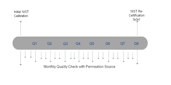 由于流程是自动化的并且每月发生,再认证要求每两年进行一次 (Q1-Q8)。 了解如何用84i型汞渗透源延长认证时长。