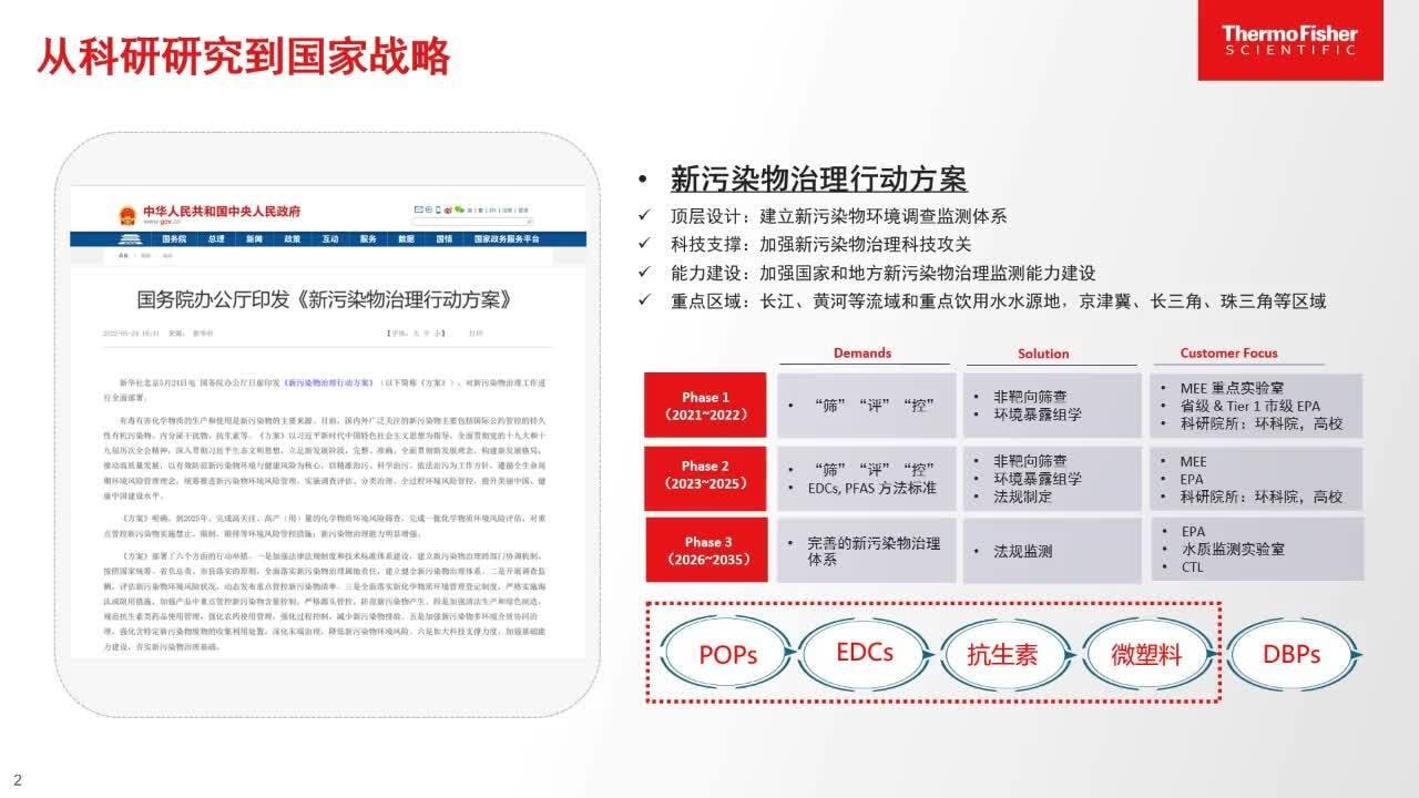 新污染物由于具有较强的生物毒性、环境持久性、生物累积性等特征,对生态环境或者人体健康存在较大的危害性风险,其治理已成为全球性重大课题。国内新污染物治理将按“筛”、“评”、“控”三个步骤展开,涉及的新污染物分析策略包括靶向分析、非靶向筛查和新污染物健康风险与暴露评估三个维度,基于赛默飞完整产品矩阵及创新性技术,能为新污染物三个维度分析策略提供全流程解决方案,助您轻松应对新污染物样品制备、样品分析至数据挖掘的极致挑战。