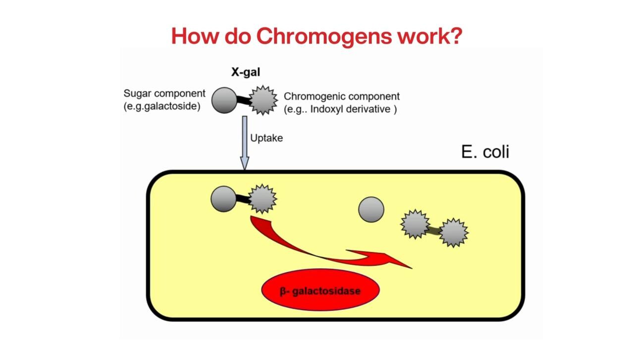 The evolution of rapid culture media-based methods has been made possible by the development of chromogenic media, which contain soluble colorless molecules called chromogens. Chromogens are composed of two parts: