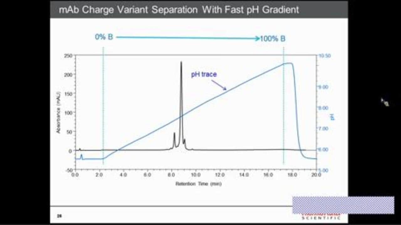 此外,可使用Thermo Scientific™ MAbPac™ SEC-1体积排阻色谱柱对mAb单体、聚合体以及蛋白水解产生的Fab和Fc片段进行高分离度分离。 此类体积排阻色谱 (SEC) 柱即使在非变性条件、高盐和低盐流动相以及挥发性洗脱液中也具有出色的性能。 非常适用于ADC。