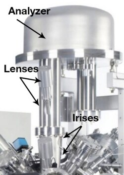 光电子能谱仪中分析器、透镜和马达驱动机械光阑的位置
