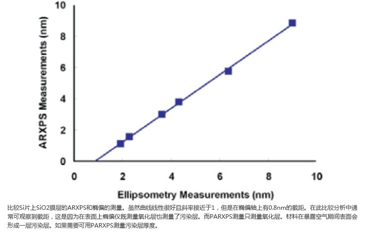 利用集成在Avantage数据系统中覆盖层厚度计算软件,数值计算膜层厚度。多层膜的厚度用PARXPS计算。