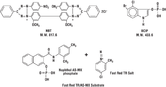 An ideal system for blotting or staining applications with AP is the combination of NBT and BCIP. Together, they yield an intense, black-purple precipitate that provides much greater sensitivity than either substrate alone. This reaction proceeds at a steady rate, allowing accurate control of its relative sensitivity. NBT/BCIP characteristically produces sharp band resolution with little background staining of the membrane.