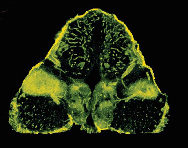 Endogenous phosphatase activity in the zebrafish brain, localized with the ELF 97 Endogenous Phosphatase Detection Kit (E6601). Enzymatic cleavage of the ELF 97 phosphatase substrate yields a bright yellow-green–fluorescent precipitate at the site of enzyme activity. The image was acquired with a bandpass filter set appropriate for the ELF alcohol precipitate.