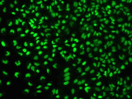 Live HeLa cells labeled with 5 µM SYTO® 9 (Cat. No. S34854) for 30 minutes at 37°C.