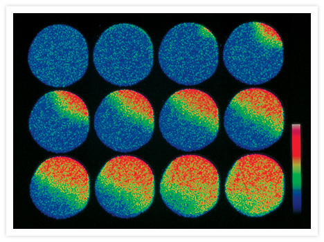 Pseudocolored images of changes in intracellular free Ca2+ in AtT-20/D16v-F2 cells, monitored at 9 sec intervals with fluo-4, AM (F14201, F14202, F14217, F23917). Go ›