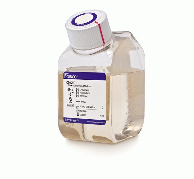 CD CHO medium is a protein-free, serum-free, chemically-defined medium optimized for the growth of Chinese hamster ovary (CHO) cells and expression of recombinant proteins in suspension culture. With a proven track record of quality for more than 10 years, CD CHO medium contains no proteins or peptide components of animal, plant, or synthetic origin, as well as no undefined lysates or hydrolysates.