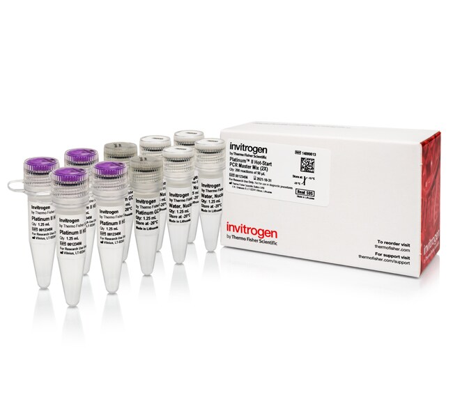 Platinum II Taq Hot-Start DNA Polymerase is an engineered Taq DNA polymerase that shows increased resistance to reaction inhibitors originating from sample material or DNA purification steps. The polymerase has a higher DNA synthesis rate and delivers PCR results more than two times faster than other Taq DNA polymerases. Proprietary Platinum Taq antibodies block polymerase activity at ambient temperatures and dissociate after the initial denaturation step at 94°C. This automatic hot start provides increased sensitivity, specificity, and yield, while allowing reaction assembly at room temperature.