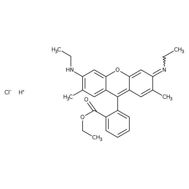 IUPAC Namehydrogen ethyl 2-[6-(ethylamino)-3-(ethylimino)-2,7-dimethyl-3H-xanthen-9-yl]benzoate chloride