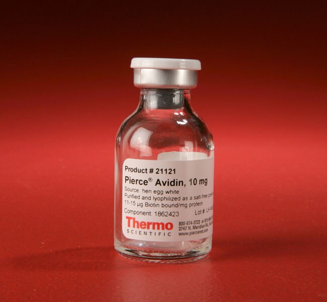 Thermo Scientific Pierce Avidin is a purified avidin protein from hen egg whites that effectively binds biotin, a tag that is frequently used to tag antibodies and other probes for immunodetection methods.