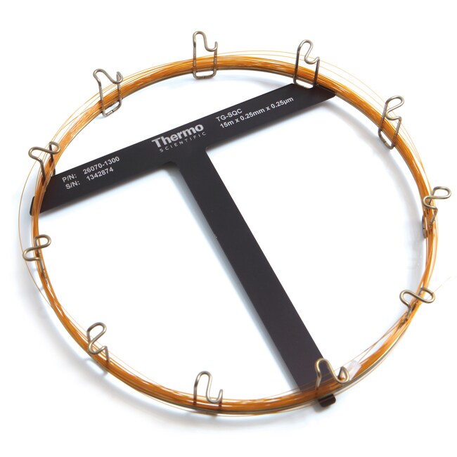 Ensure the quality of your Thermo Scientific instrument when installed on site by using the Thermo Scientific™ TraceGOLD™ TG-SQC GC column. The TraceGOLD TG-SQC GC column is optimized for system qualification tests during initial installation, or during service and maintenance of an installed instrument. This column is recommended for benchmark testing only.