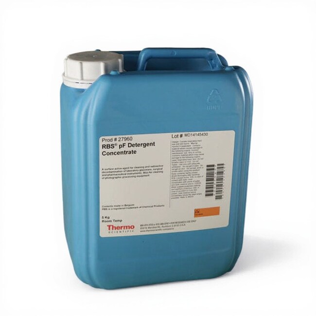 Thermo Scientific RBS pF 清洁剂浓缩液是一种不含磷酸盐的表面活性剂配方,可用于多种实验室表面和玻璃器皿。