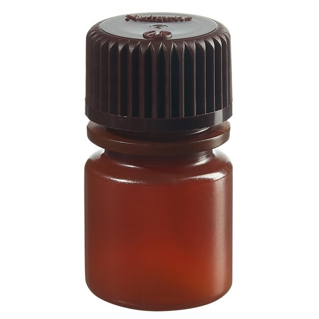 采用 Thermo Scientific™ Nalgene™ 半透明琥珀色 HDPE 带盖诊断瓶保护光敏样品,适用于储存和运输小容量宝贵的光敏试剂。半透明瓶既可隔光又可观察液位,适用于检测试剂盒和许多小容量应用。