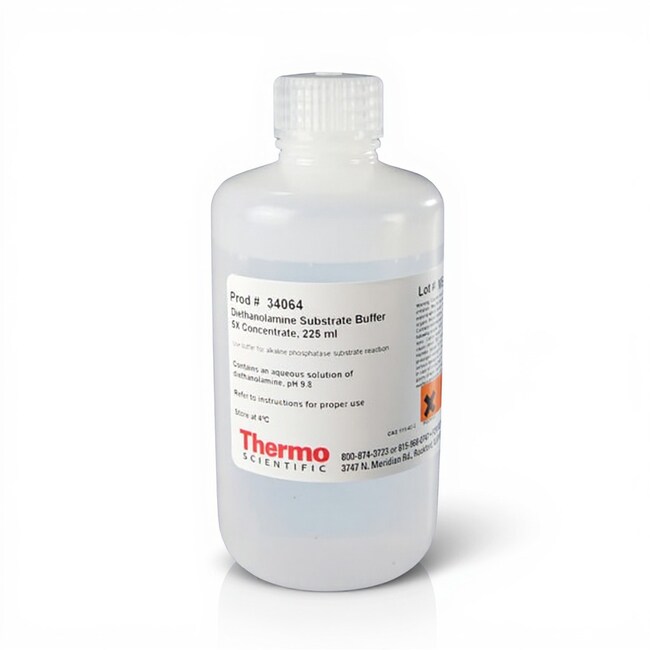 Thermo Scientific Pierce Diethanolamine Substrate Buffer (5X) include optimized, reliable and convenient stock solutions of diethanolamine for alkaline phosphatase (alk-phos) detection.