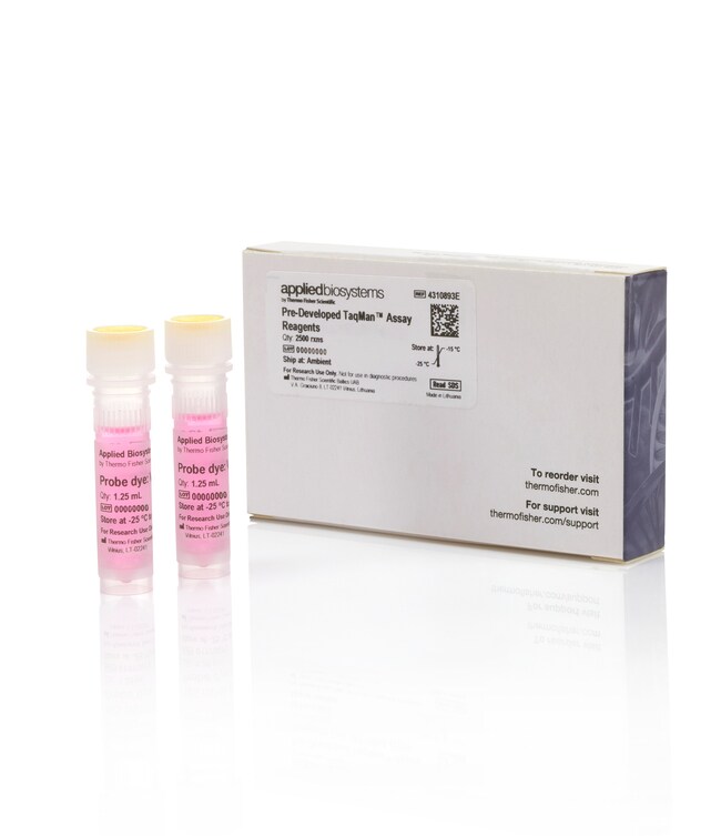 Applied Biosystems™ 人 RPLP0(大核糖体蛋白)内源性对照品(VIC™ ⁄ TAMRA 探针,限制性引物)适合用作内源性对照品。与其他 TaqMan™ 基因表达测定试剂盒配合使用时,可以对 cDNA 样品中的相对基因表达进行定量测定。探针用 VIC™ 染料进行标记 - TAMRA™ 染料且引物有限。可用于多重或单重 PCR 反应。内源性对照品应与库存和定制 TaqMan™ 基因表达试剂盒、定制 TaqMan™ 基因表达试剂盒和⁄或定制 TaqMan™ 引物和探针配合使用。