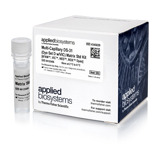 Both DS-30 and DS-31 matrix standards contain 6-FAM, NED and ROX. The difference is the dye used in the green channel where DS-30 contains the HEX dye versus DS-31 which contains the VIC dye. The VIC dye emits a stronger signal and is more stable than the HEX dye and we suggest that you use the VIC dye for weak amplicons. Both DS-30 and DS-31 are contained in dye set D, as both dyes have excitation and emission wavelengths that are quite similar and, upon the initial release of DS-31 on the Applied Biosystems 310 Genetic Analyzer, it was not necessary to change the filter set to run DS-30 and DS-31