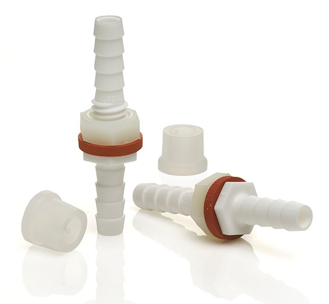 Customize tubing sets as culture vessels for aseptic transfer of liquids with autoclavable Thermo Scientific™ Nalgene™ Barbed Polypropylene Bulkhead Fittings, suitable for use with most Nalgene bottle and carboy closures. Pre-drilled 38mm-430 closures allow easy, safe in-house assembly.