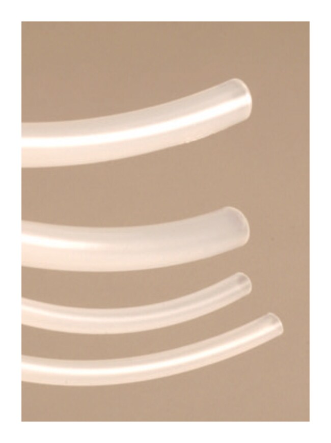 Perform a variety of applications with the excellent chemical resistance to several acids and alkalis of translucent and semirigid Thermo Scientific™ Nalgene™ 689 Polypropylene Tubing. This polypropylene tubing with durometer of 75 (Shore D) is unaffected by most solvents at ambient temperatures. Food-grade materials comply with 21 CFR 177.1520 for food packaging.