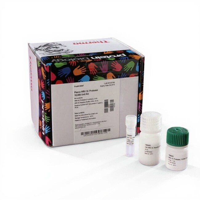 Thermo Scientific Pierce 人鼻病毒 (HRV) 3C 蛋白酶是一种重组半胱氨酸蛋白酶,可去除含 HRV 3C 蛋白酶切割位点序列的蛋白中的融合标签,该蛋白酶带有双重标签,切割完成后很容易从样品中去除。