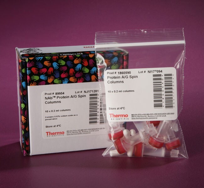 Thermo Scientific NAb 蛋白 A/G 离心柱便于对各种样品类型中的抗体进行快速、小规模亲和纯化。