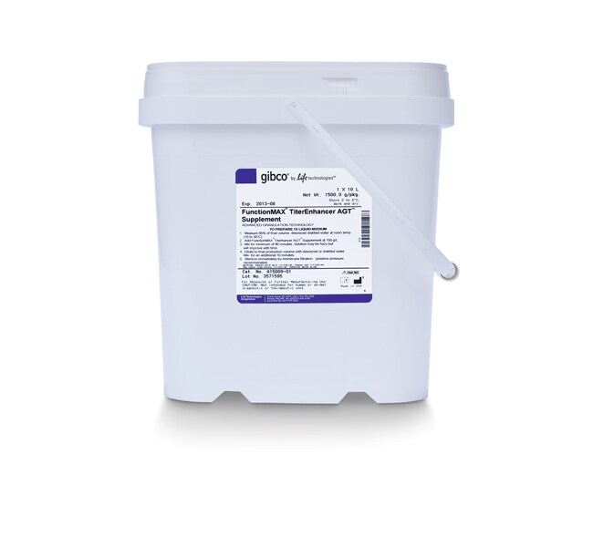 FunctionMAX™ TiterEnhancer uses a new technology to combine key nutrients in a highly concentrated (150 g/L), pH-neutral, chemically-defined, AOF (animal origin-free) functional additive that is designed to reinforce existing feeds and amplify the productivity of standard high cell density fed-batch platforms. FunctionMAX™ TiterEnhancer is available in both a liquid format and this AGT™ dry format and is stable for over 1 year. FunctionMAX™ TiterEnhancer offers: