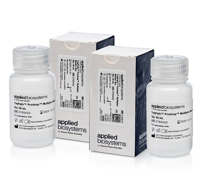TaqPath ProAmp 多重预混液适用于高通量基因分型中的较高多重扩增(最多4个靶标)以及要求严格可靠性和准确度的拷贝数变异方案,即使存在临床样品中常见的抑制剂。其可在广泛的 qPCR 仪器平台上提供基因组 DNA 靶标的灵敏、可靠结果。TaqPath ProAmp 多通路预混液按照严格的 ISO13485 质量管理体系生产,设计用于生产批次间性能一致的产品。