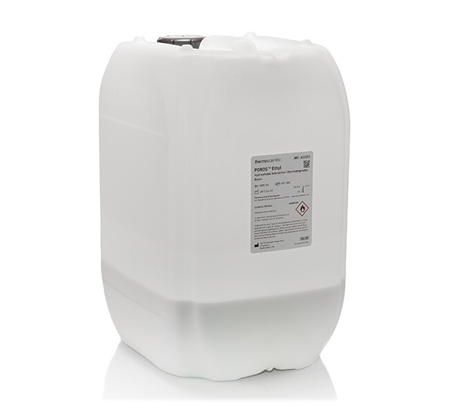 These features of POROS Ethyl HIC Resin are a major improvement to the performance of traditional HIC resins, setting the standard for hydrophobic interaction chromatography. POROS Ethyl HIC Resin combines superior and consistent performance, exceptional customer support, strong operational excellence, and a strong legacy based on proven technology from a well-established chromatography resin supplier. This resin comes with complete technical and regulatory support. POROS Ethyl HIC Resin is available in various bulk package sizes for large-scale purification, as well as pre-packed columns for initial process development.